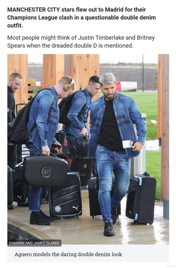 Who even allowed this? Denim on Denim is the biggest fashion fopa you can ever imagine. That too with Manchester City players!! Not daring, this is dumb in every sense. Poor guys. I don’t know who advised this. This shit is gonna get even more harsh backlash from fashion police in coming days. Dsquared2 is up for a big big re-evaluation strategy towards this mess.
