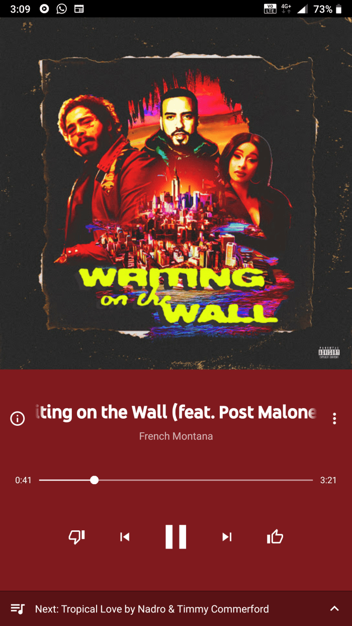 I play songs on loop when they catch the rhythm of my positive vibe. Awesome track my French Montana.๐